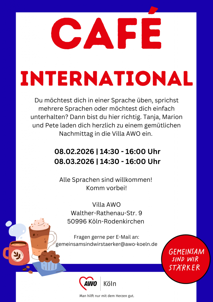 Marion, Tanja und Peter laden alle, die Lust haben neue Menschen kennenzulernen und eine nette Zeit bei einer Tasse Kaffee miteinander zu verbringen, herzlich in die Villa AWO ein.