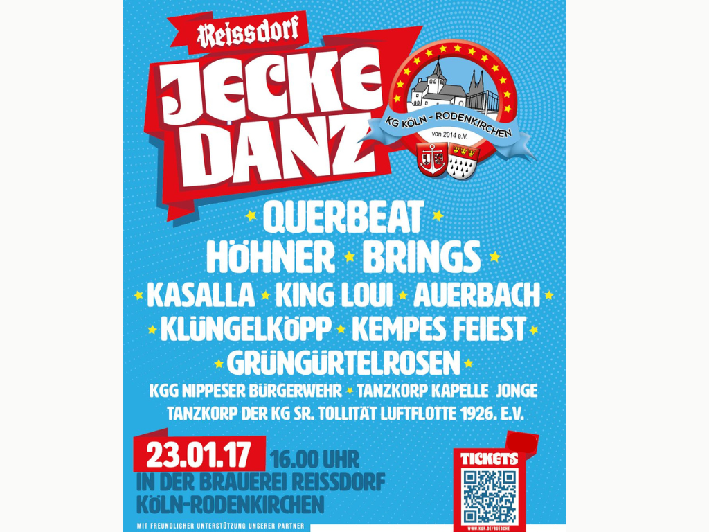 Die erste Ausgabe der JECKEDANZ in der neuen Location, der Privatbrauerei Heinrich Reissdorf in Rodenkirchen, war in 5 Minuten ausverkauft und lieferte ein grandioses Fest mit bester Unterhaltung, einen sensationeller Abend mit 1.800 fantastischen Gästen.
