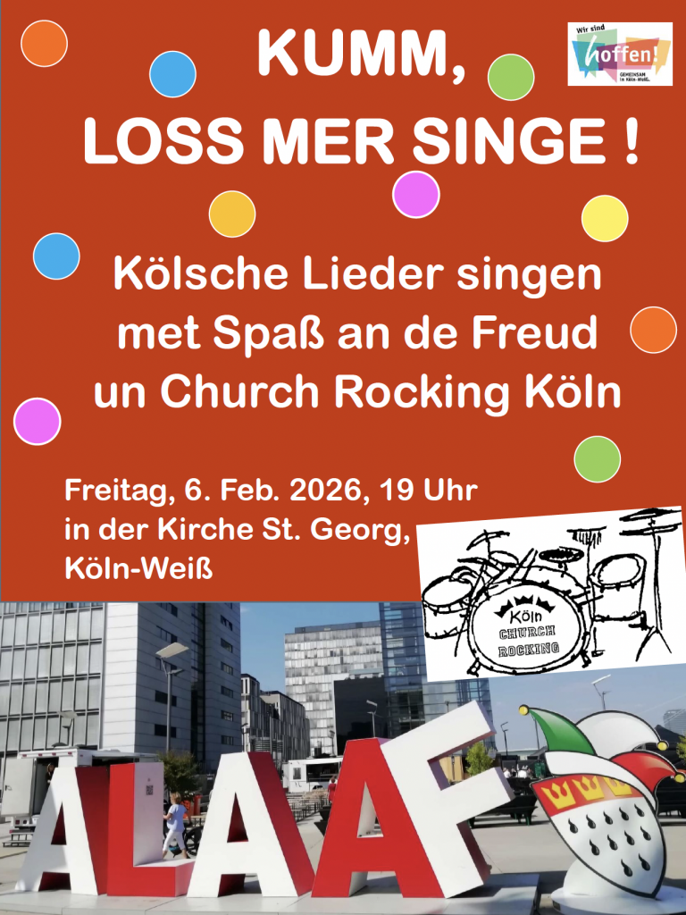 Am 20.01.2026 um 10.00 Uhr beginnt wieder ein PC-Kurs in der Auferstehungskirche in Sürth. Es sind 6 Termine, jeden Dienstag von 10.00 – 11.30 Uhr. Die Teilnahme ist kostenlos. Eine Anmeldung ist erforderlich. Bitte bringen Sie Ihr Laptop mit. Der Kurs findet in der Auferstehungskirche Sürth / Weiß, Auferstehungskirchweg 7, 50999 Köln Sürth statt. Anmeldung […]