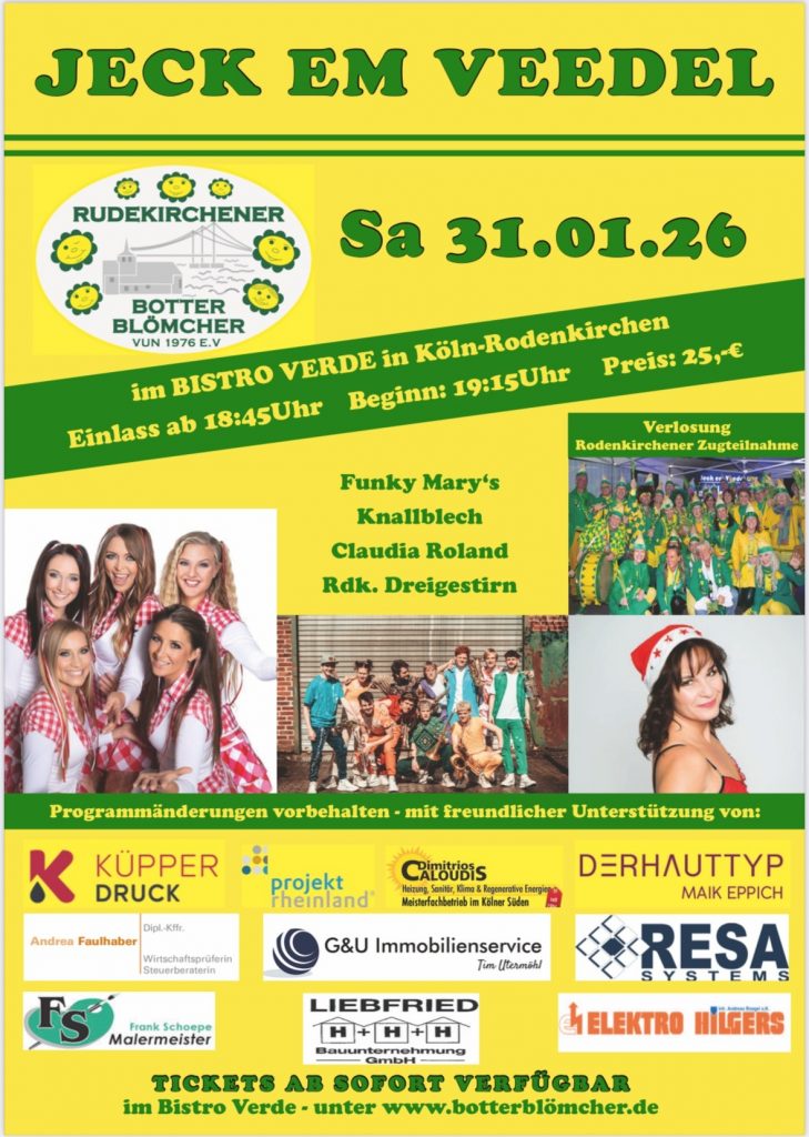Einsingen mit Schängs Johannes „Schäng“ Eßer – Kontrabass, Tuba, Gesang | Gerhard Dierig – Bratsche, Violine, Tenorhorn, Gesang | Jan Weigelt – Klavier, Akkordeon, Horn, Gesang | Rudi Rumstajn – Gitarre, Gesang Die Gürzenich – Orchester Urgesteine Johannes „Schäng“ Eßer und Gerhard „Gerrry“ Dierig mit Jan Weigelt und Rudi Rumstajn spielen Klassiker und Raritäten der […]